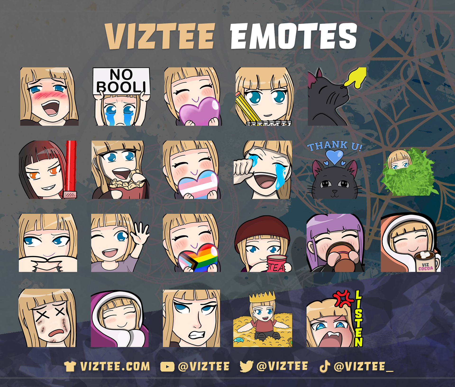 Static and Animated Emotes Created for the Viztee Twitch.tv Channel